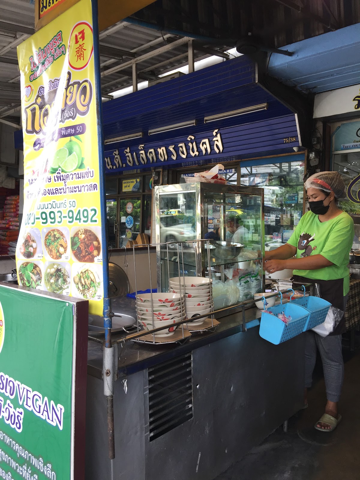 Bangkok, Nawamin(road) Vegetarian noodle shop, bus stop at the entrance to Soi Nawamin 50. 75 36 Nawamin Rd, Khlong Khum, Bueng Khum, Bangkok 809939492 Mon 7:30AM–2PMTue 7:30AM–2PMWed 7:30AM–2PMThu 7:30AM–2PMFri 7:30AM–2PMSat 7:30AM–2PMSun 7:30AM–2PM