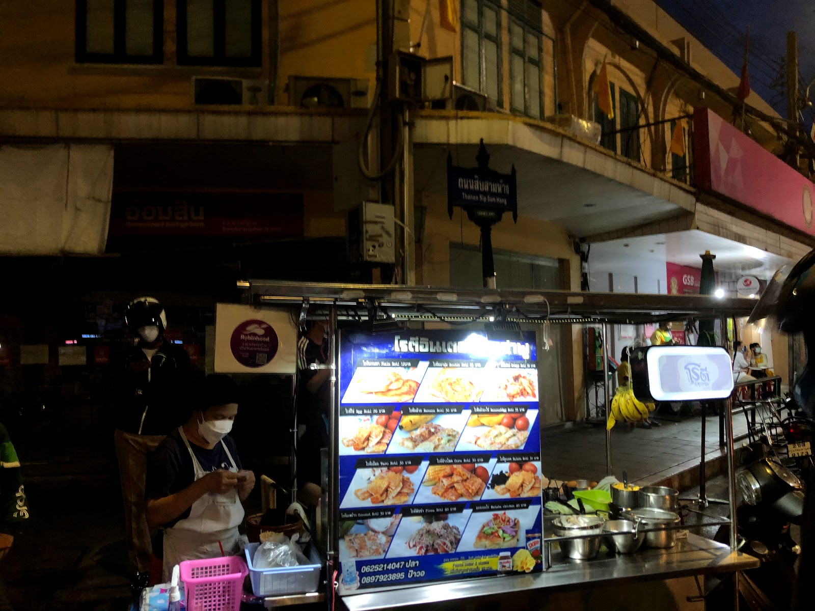 Bangkok, Old Town Roti Inter Bang Lampoo 25 Thanon Sap Sam Hang, Talat Yot, Phra Nakhon, Bangkok 10200 897923895 Mon 6:30PM–12AMTue ClosedWed 6:30PM–12AMThu 6:30PM–12AMFri 9AM–5PMSat 6:30PM–12AMSun 6:30PM–12AM