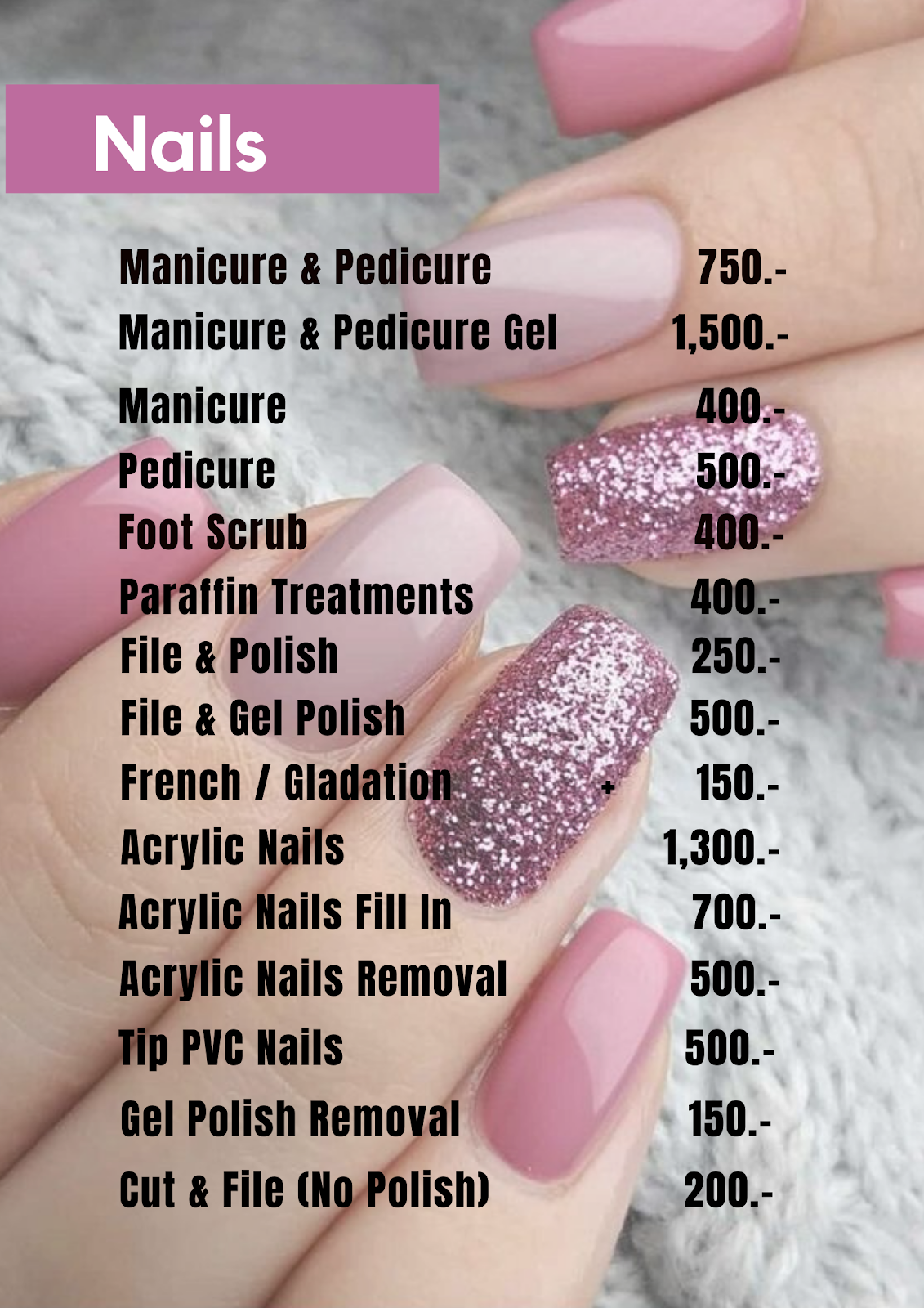 Bangkok, Sathorn Amor Nail & Wax Salon 433 Thanon Suan Phlu, Thung Maha Mek, Sathorn, Bangkok 10210 6621161810 Mon 10AM–9PMTue 10AM–9PMWed 10AM–9PMThu 10AM–9PMFri 10AM–9PMSat 10AM–9PMSun 10AM–9PM